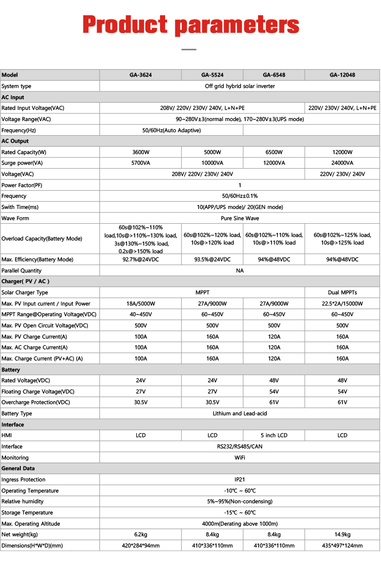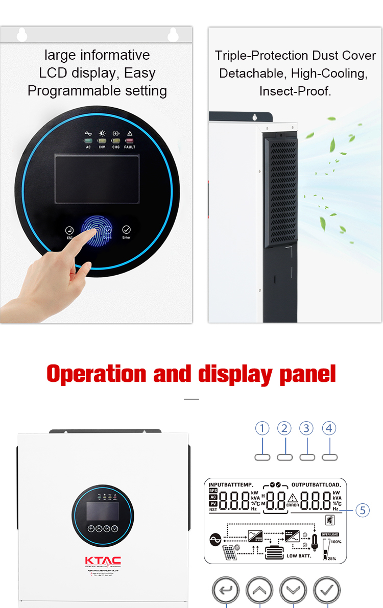 Advance new generation of hybrid solar inverter charger, with good combination of working mode and configurable voltages and current
